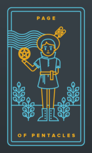 與這套牌的其他宮廷牌一樣,錢幣騎士圍繞著工作、努力和一般的責任。錢幣騎士坐在田野裡的一匹黑馬上。不像其他的騎士,他們總是去參加這樣或那樣的冒險,這位騎士決定留在家裡,而是專注於耕種田地。他為下一次收穫