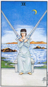 意味著你有意避免做出重要的決定來維持生活中的和平與和諧。儘管避免了這種情況,但由於必須遲早做出決定,所以不能長期保持這種狀態。 該卡片建議您在做出決定之前先進行智力平衡以便好好思考。有時候,生活可能會
